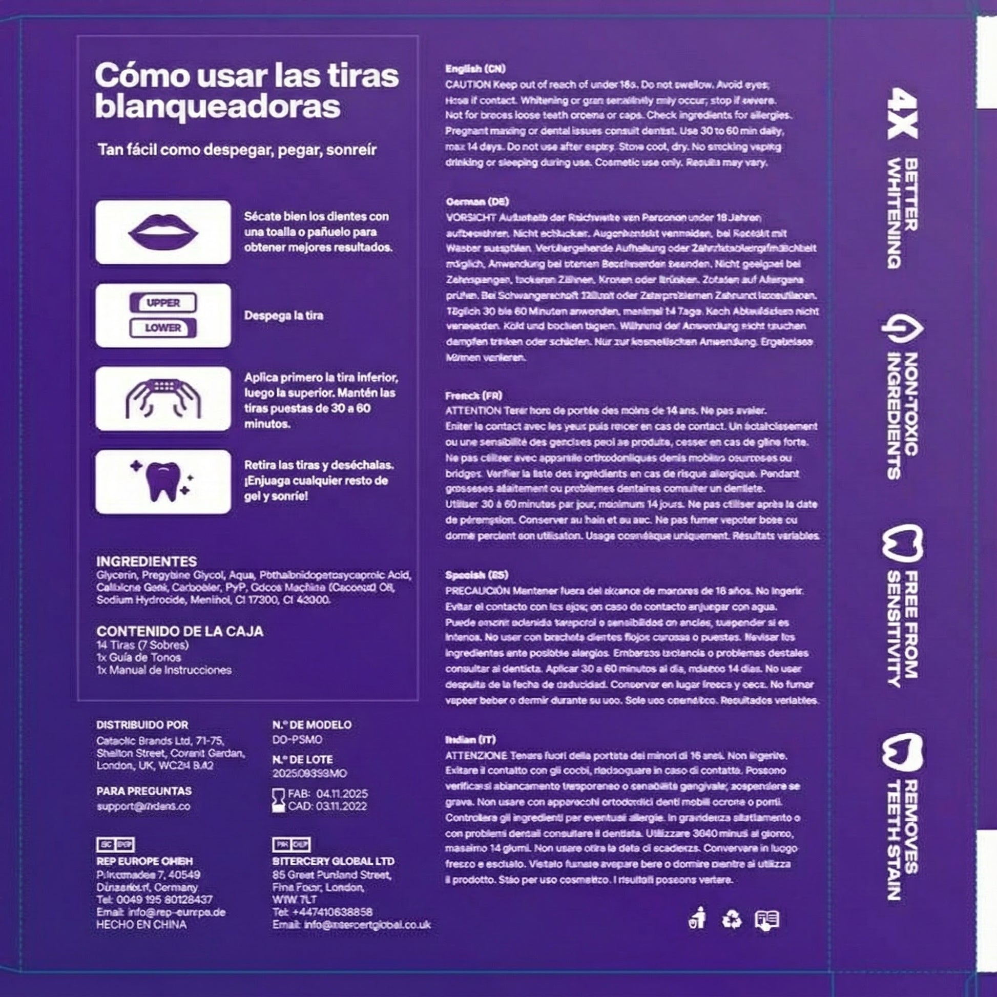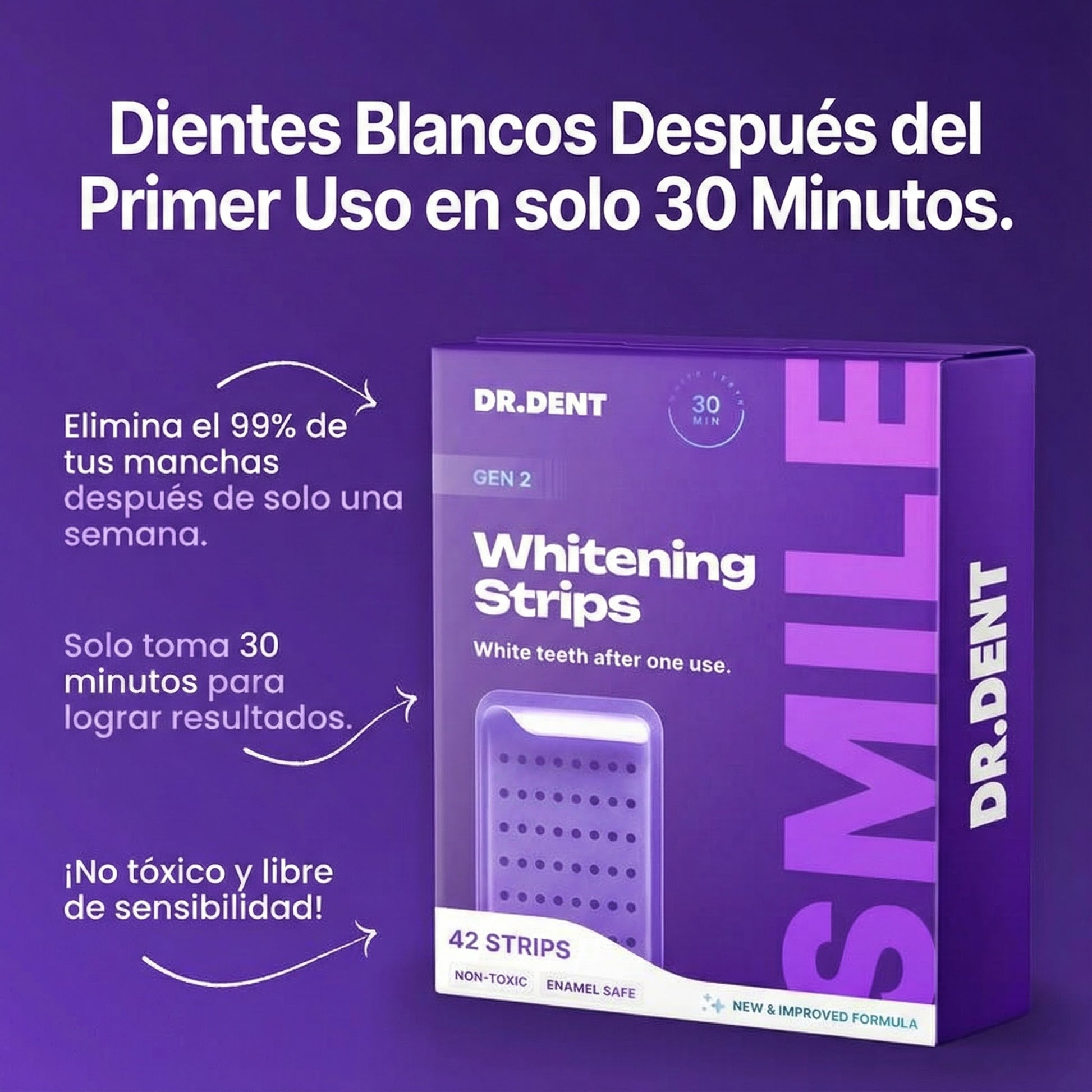 Para lograr el nivel máximo de blancura dental, se recomienda usar las tiras 1 vez al día durante una semana, obteniendo un blanqueamiento más intenso, uniforme y duradero.